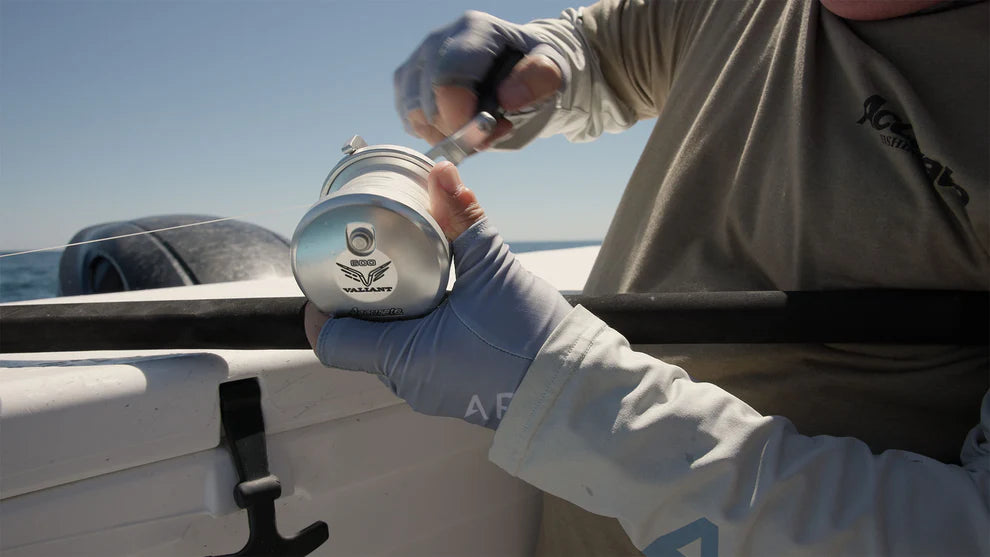 flüssigen Lauf und dauerhafte Zuverlässigkeit. Edelstahl-Rücklaufsperre: Verhindert Spiel beim Drill großer Fische. Power-Arm-Kurbel: Erhöht Drehmoment und Hebelwirkung für optimale Kontrolle. Integrierte Sicherheitsmerkmale: Rastfunktion vor dem Freilauf verhindert versehentliches Abrutschen während des Drills. Druckknopf-Stopp vor Erreichen der maximalen Bremskraft schützt vor Fischverlust beim
