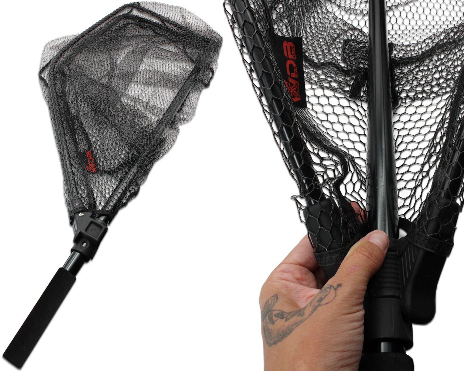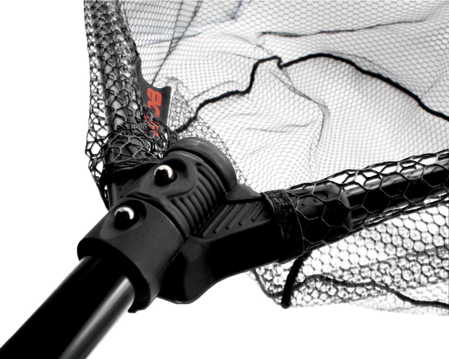 Der Big Fish Kescher ist perfekt geeignet für die Angelei vom Boot und die Angelei vom Ufer aus. Er benötigt nur sehr wenig Platz im Boot, kann leicht transportiert werden und ist innerhalb von wenigen Sekunden einsatzbereit. Am Gestänge des Netzes ist ein Gelenk angebracht, welches ermöglicht, den Kescherkopf auf die Hälfte der ursprünglichen Größe zusammenzufalten. Das Handteil kann im Kescherblock in jeder erdenklichen Position geschoben werden. Groß genug für alle Fischgrößen und dank des gummierten Netzes auch perfekt für die Kunstköderangelei geeignet.